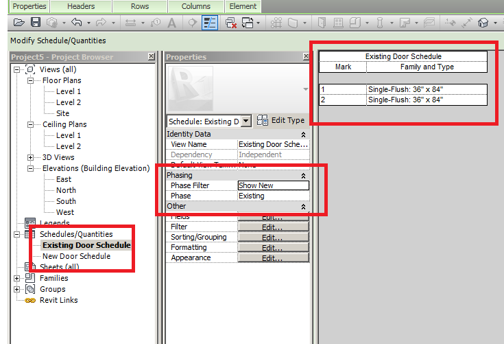I am having trouble with certain doors appearing in both the existing and new door schedules. I am using phases and if I have a door that is existing and never demoed, it is appearing in my new door schedule and in my existing door schedule. Same issue with the windows. I only want new doors to appear in the new door schedule. Any way to get rid of the existing doors in the new schedule? Thanks.