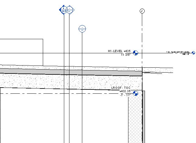 I have a concrete slab that is the roof over a below grade lab space. The floor object includes the structural concrete slab, rigid insulation, and a concrete walking surface. The slab has been modified using modify sub elements so that it slopes in two directions. The trouble I am having is that when the slab in cut in one direction for detail views, the floor material layers are visible. When I cut a section at 90 deg to that view, I do not see the material layers, I see the entire section shown as concrete. This is not an issue of detail level, the layers are not visible when the visibility is set to fine. The attached screen shots show two views of the slab. The first shows all the material layers. The second is the same section view, duplicated and rotated 90 deg, and the material layers are not visible. No settings for the view were changed between these two views. I am guessing that this has something to do with the fact that the slab has been modified so that the corners are set to different elevations. If anyone has any thoughts about the cause or fix, please post. Thanks