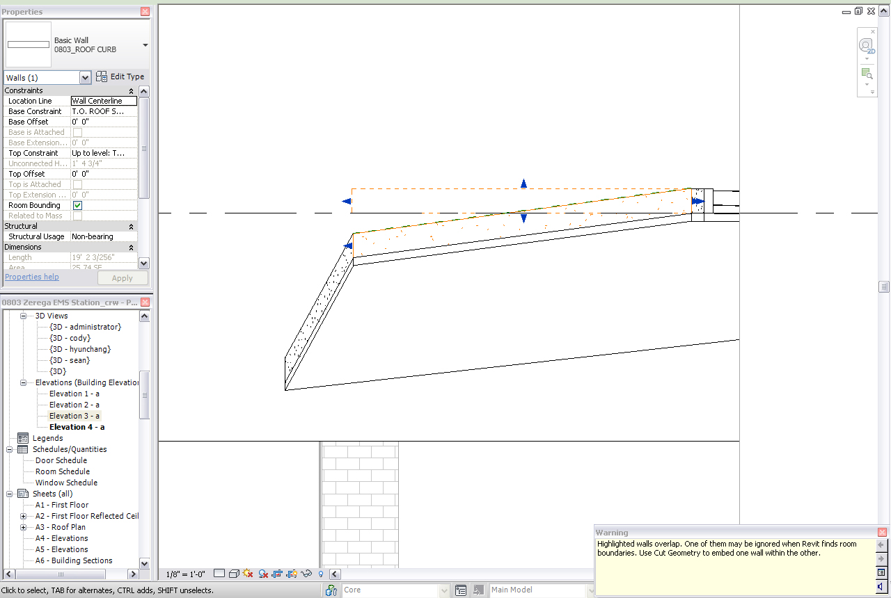 So I have been trying to work through some of the suggestions that you all have offered and attached are some of the issues that I'm having: -Attaching the bottom of the wall to my sloping roof has a problem that I'm not sure what to do about, plus my name reference plane for the top does not show as an option in my properties dialogue. -If I edit the profile I get the desired slope, with warnings, but I can't join to adjacent walls. -The best luck that I have had has been with the in-place families created as a wall, but alas, I have no options to add to the structure or to create a coping profile. I would have the same functionality with imported rhino geometry. Any other suggestions? I'm really trying to not resort to doing my modeling in rhino or some other program just to do a roof parapet. Thanks.