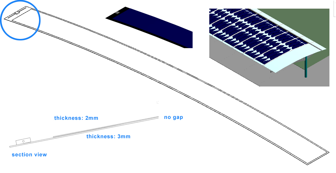 Hi, I'm using Revit Architecture 2011, and have attached 2 images below. I'm making a curved solar laminate which consists of a 2mm dark blue solar layer on a 3mm laminate. It looks fine as a generic .rfa but when I export it into a project, when I zoom outwards, the whole 5mm laminate seem to disappear into the surface it is on. To make it look better, I either lift the entire family off the surface it is in, within the project, or I lift the 2mm layer away from the 3mm laminate in the family file. The further I zoom the project, the further I have to lift the family away from the surface it is on. But for section details, I have to move it back down again. Is there a better solution? Thanks!