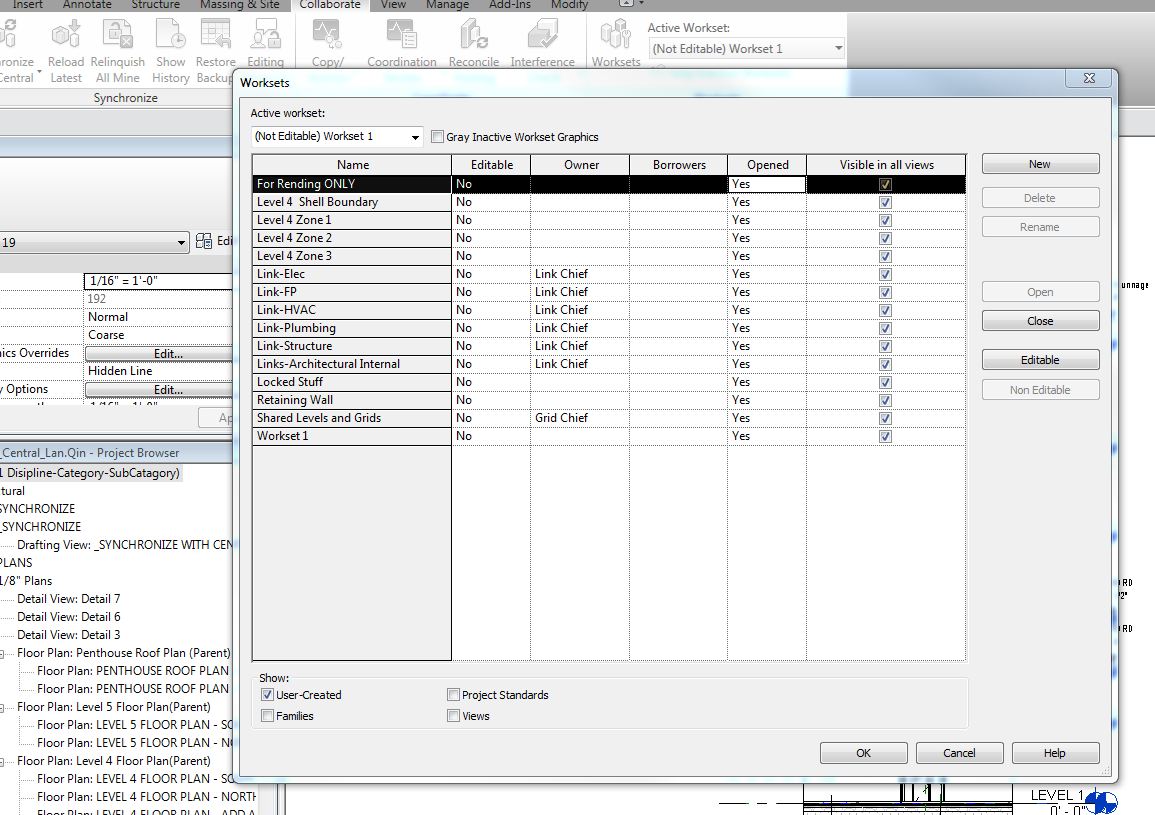 As our model is getting larger and larger, we try to make every person can load less information in, which is enough for his work and at the same time can speed up the operation. We can not unload certain consultant link, since after sync, it will affect other's work. So we put each consultant link in a special workset. And assume that we can only load some worksets in the local file. What I want to confirm here is -- 1. close certain workset really means not loading that workset in, instead of not showing it only; 2.When we open a local file, we can specify the work sets we want to open. Once we load the local file in, in the worksets window, we can also manipulate to open and close certain views. Are they doing the same thing?(see attachment)