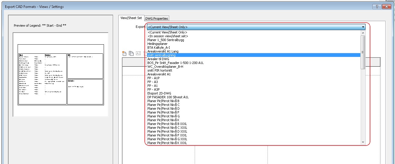 Exporting views for DWG |