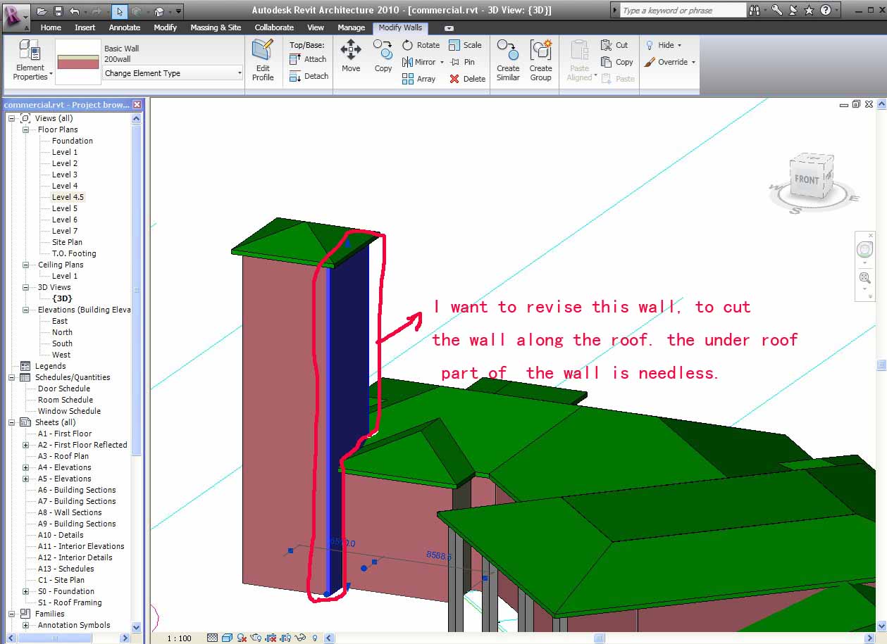 Forums >> Revit Building >> Technical Support >> how to cut the wall along the roof?