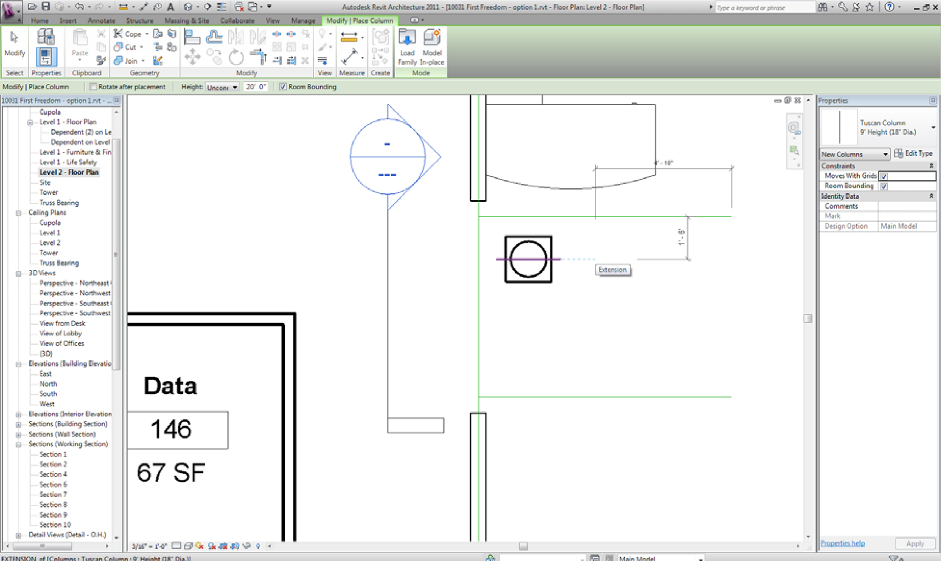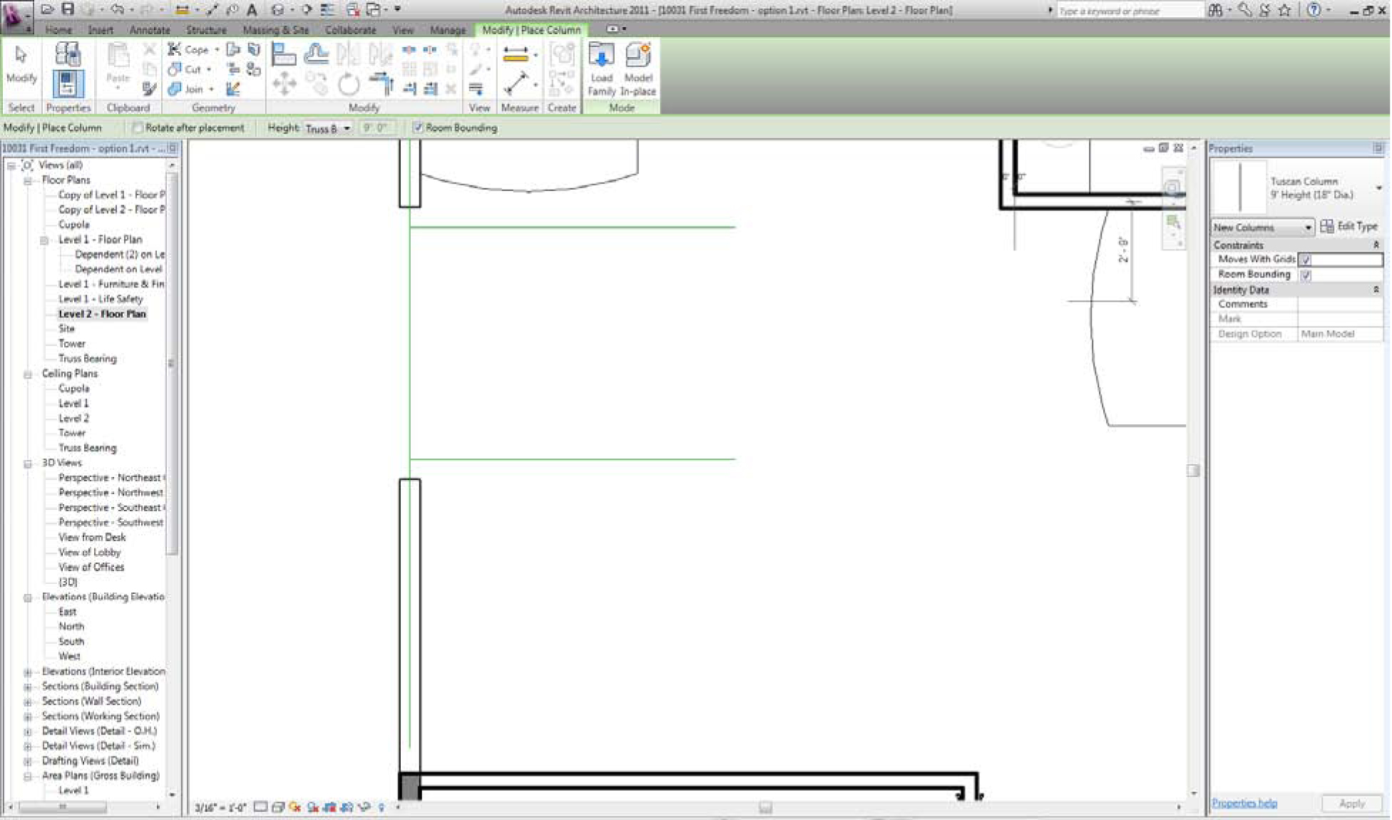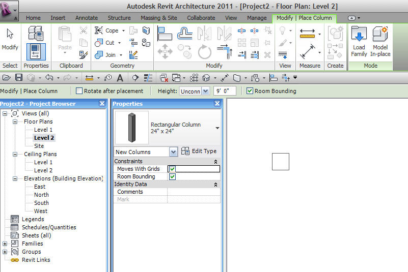 I am using Revit Arch 2011. I'm trying to place an architectural column on the second floor but it is automatically placed on the first floor, regardless of whether or not I set its base level to "floor 2". Anyone have any thoughts on why this is the case? Thanks!