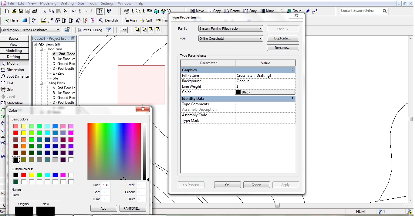 hey guys, this is driving me absolutly insane.... i want to use use filled region to highlight one unit outta 20 of them in complex on site plan and location plan...kinda highlight the footprint...i still want to c the footprint lines with basick walls outline in there...and have the hatch as light gray... the problem is watever i do...its either coming up solid black...(set on black lines in printing) or if i select colour or grayscale, it will comeout in colour, which workes then...but all walls ptint colour as well as everithing else...and on top of it all even though is set on transparent...cant c curse tru it....ne advice...