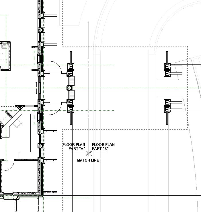 I wanted to see how others are using the matchline and view reference tools. I have attached a image of how our firm has done matchlines ever since hand drawings. Now that we are fully revit I would like to use the program how it was intended so that I may learn the "revit way" and customize that... Currently the view reference annotation directs you to the detail number and sheet number. How would you show this graphically in plan where the matchline exists? I have a part "A" and a part "B" floor plan and currently we show it how the image I have attached shows it. Referring to the attached image, we show where part "A" and part "B" floor plans start so it's easily understood. I can't put the "primary" view on a sheet because it is too big and that is why I am splitting up the floor plan in the first place. To get around this I created an indepedent view of the floor plan so I could reduce the scale of the over floor plan to fit on the sheet. This works, but you can not put a view reference annotation on that independent plan. Could someone please let me know how you are displaying reference views with a matchline the revit way? Thanks!!