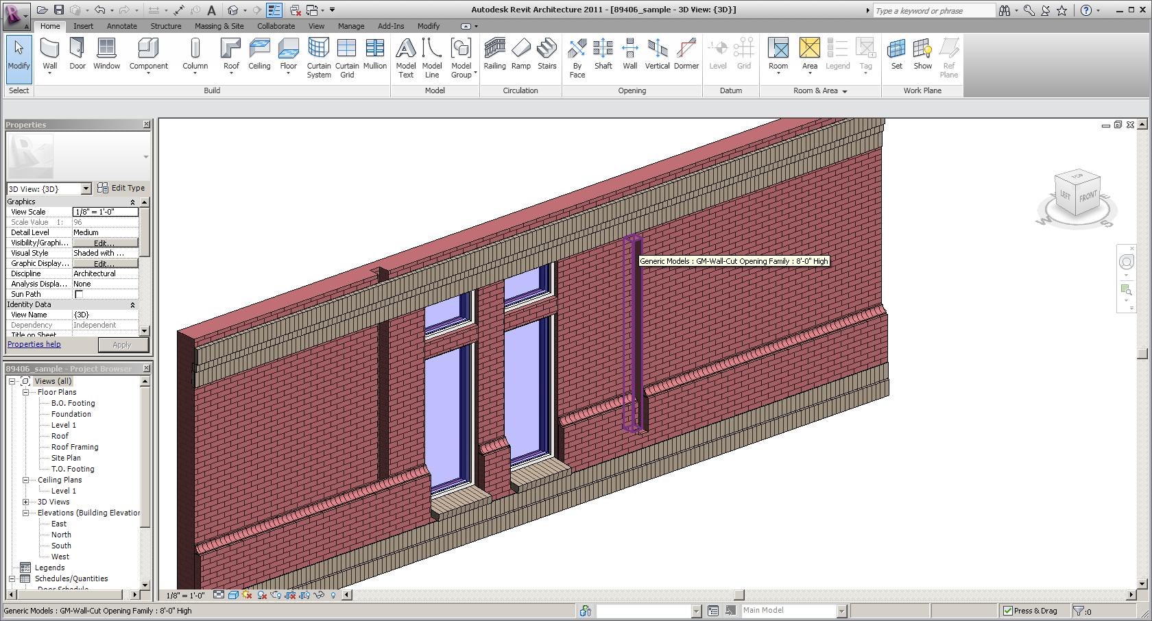 I am trying to cut a brick reveal right down the wall base so that the downspout can course into the masonry. The base sweeps are created in the wall type and are checked "cuttable." I tried creating an in-place void extrusion under the wall category to cut it like I would any other wall type. When I tell it to cut it just calculates for a while and does not cut anything. Weird. Also tried using a wall reveal. The reveal will cut the brick on the face of the wall, but not any of the profiles that have been set up in the section of the wal type. See attached image and .rvt file. Any help or just a comment would be awesome!