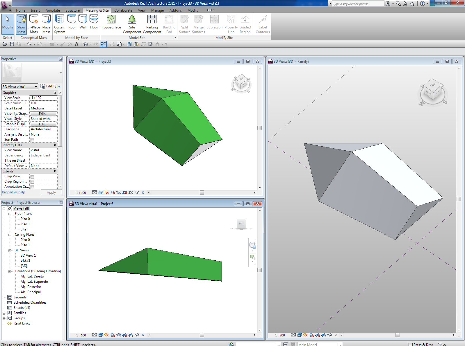 And how to create such shape? I have tried, but get a lot of mixed lines and inaccurate form (curved). I am using 2010 vs, and Model In-Place Mass. I use the flat tilted roof as the base for the new form.