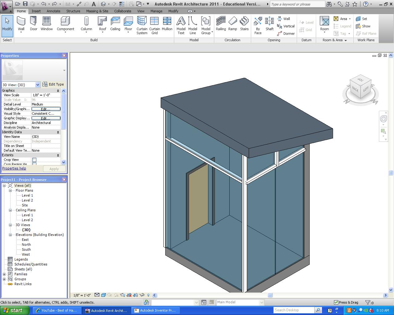 Revit 2011 Architectual My problem is this. I'm making a shed for a CAD course I'm taking at my trade school. I'm a juinor, and my teacher is more of an engineer than a architect. This shed has windows at the very top of the walls, and has a slanted roof. Now the windows on the sides should also be slanted when they meet the roof, but the windows go through the roof. How can I trim them? Or will I have to make a custom window? Here's a picture that might help.