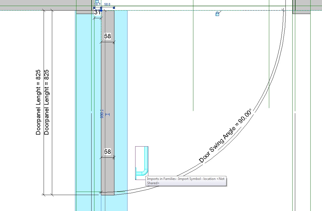 I have a problem attaching a door handle ( brought from Autocad) to a door panel. I have attached an example below.