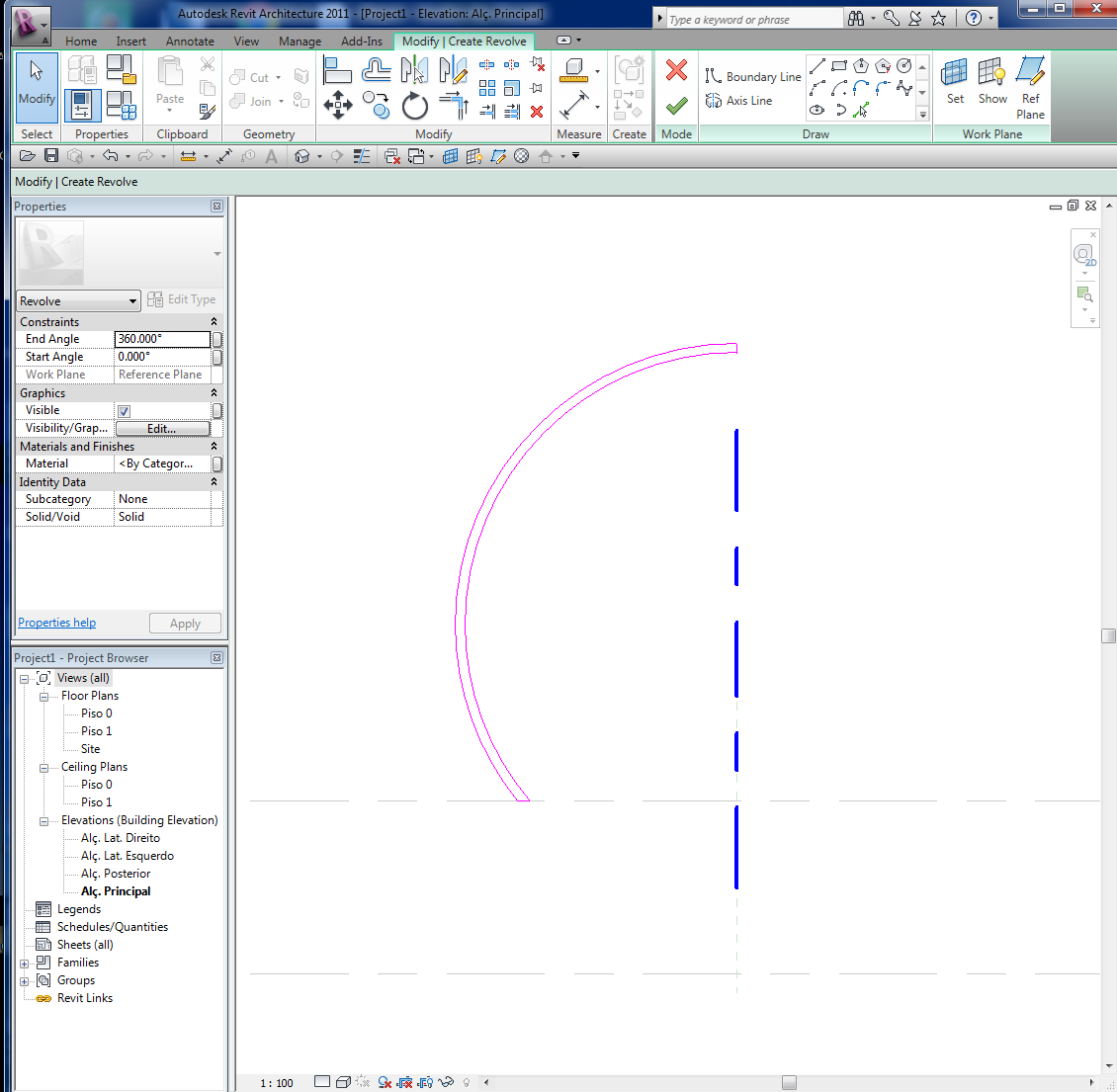 1) Home > Model in - place > Roof Category2) Model Lines > Lines > Draw half semi-circle (within Level 1 Floor Plan) 3) Home > Revolve > Specify Boudary and Axis Lines4) Click the tick, and then finish model