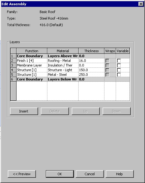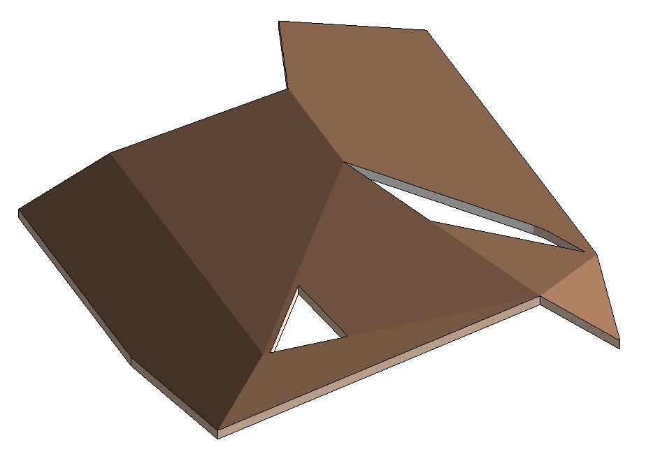 I'm trying to re-do a roof (first attachment) that someone else in the office has already modelled once, but which isn't appearing correctly. The thickness is supposed to be 416mm, however it only measures that dimension when measured vertically in section, not perpendicular (refer attachments 2 & 3). In construction, materials don't 'flatten' when sloped, yet Revit seems to be doing this to me (refer 4th attachment for Structure list in Type Properties). It's also connecting the different roof planes with vertical cuts (again refer 2 & 3), rather than at an angle - possibly the source of the problem.