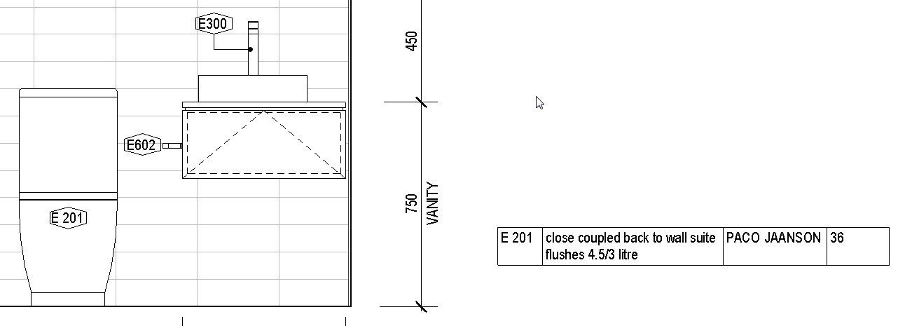 See attached for quick example the WC has a Type mark this is scheduled as is description manufacturer and quantity in the project.