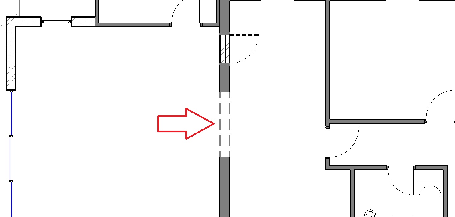 Hi, I put a sliding door at an existing wall but the piece of wall to be demolished is on top of my new door, which isn't being shown.
