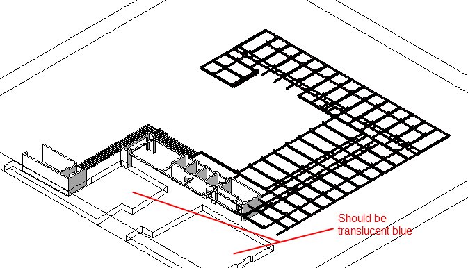 I am working on a project in 2012 and have placed a mass to represent a part of the building outside of our responsibilities. The mass is mean to be a blue translucent box (see image 1) however the graphics seem to be a bit buggy, sometimes the mass shows as it should but sometimes it just shows transparent (see image 2). I have tried opening this on another computer and the mass consistently shows as it should but then has printing errors (see image 3).