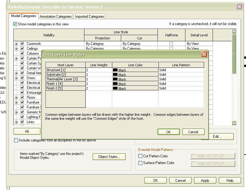 When manipulating the view settings do I need to create a sub-category within the object style 'roof' and call it 'roof slate' in order to set the pen wieght for this segement of the roof make-up?