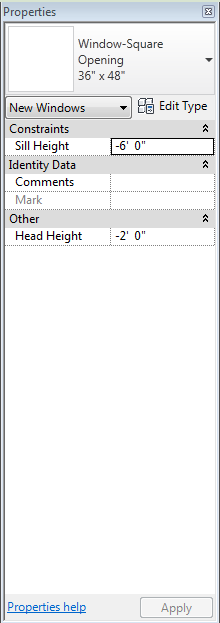 When I do a wall opening, I though that in the previous 2011 version I was using, the properties pop up would be "live" and you could adjust the base and height before you clicked it to finish. Now, you don't get that opportunity, and it seems all my openings are defaulting to a 3 ft high sill and 8 ft height.