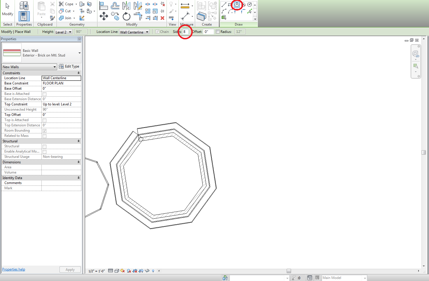 what i did was an octagonal conceptual mass and add the wall to the faces
