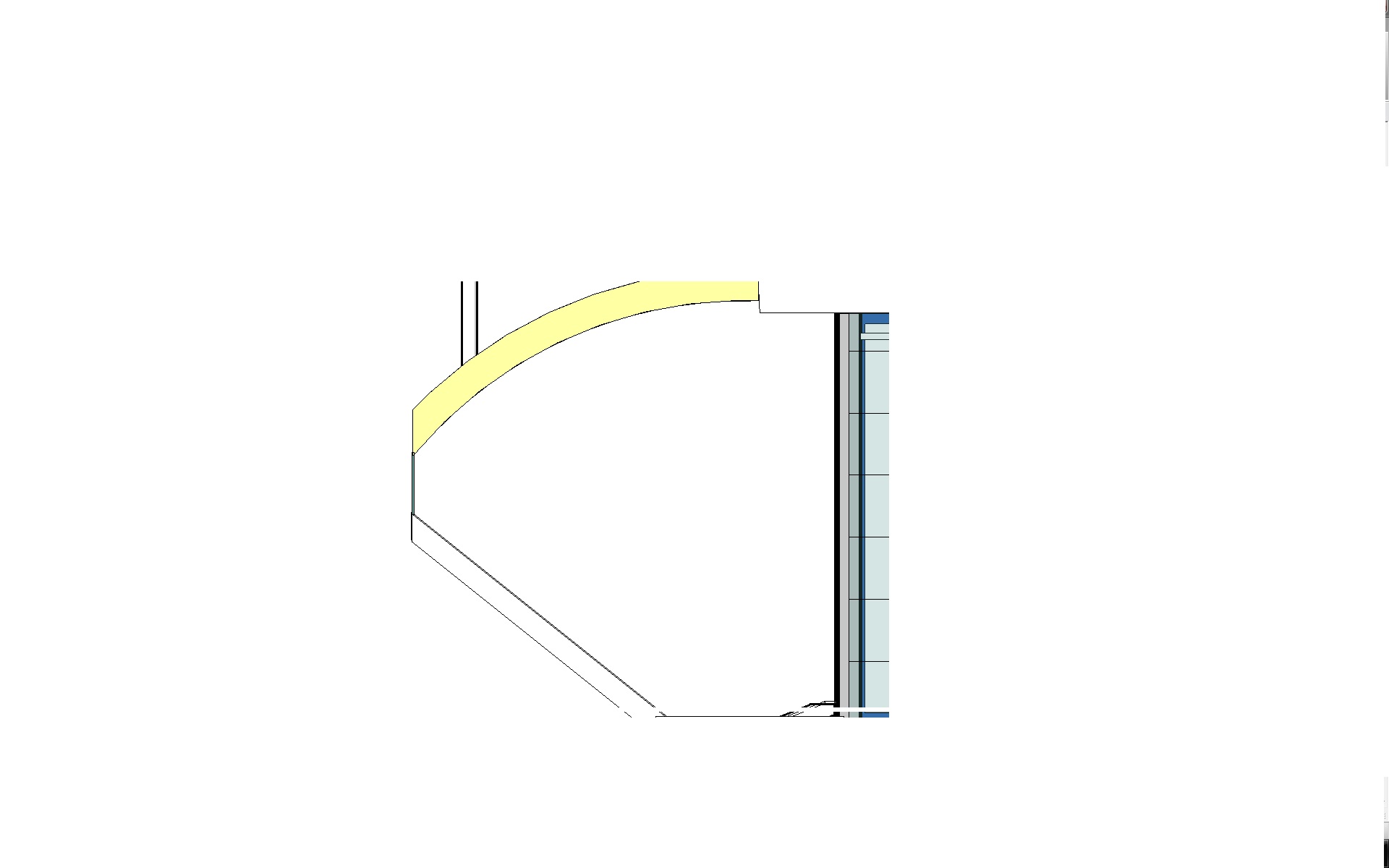 1. The first problem I have is that I am not sure how to cut curtain walling to a custom shape. The diagram I have attached is the area I am trying to fill with the curtain walling and I am not sure how to shape the glass to fill that space.