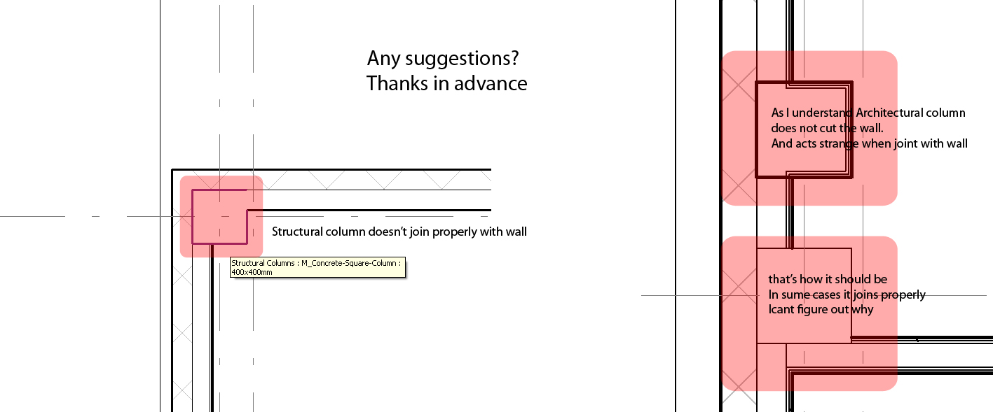 I do understand the issue with differences between structural and architectural columns, but when i join walls and structural column, somehow column and 2 layers of plasterboards and thermal insulation merges into one. pic 1