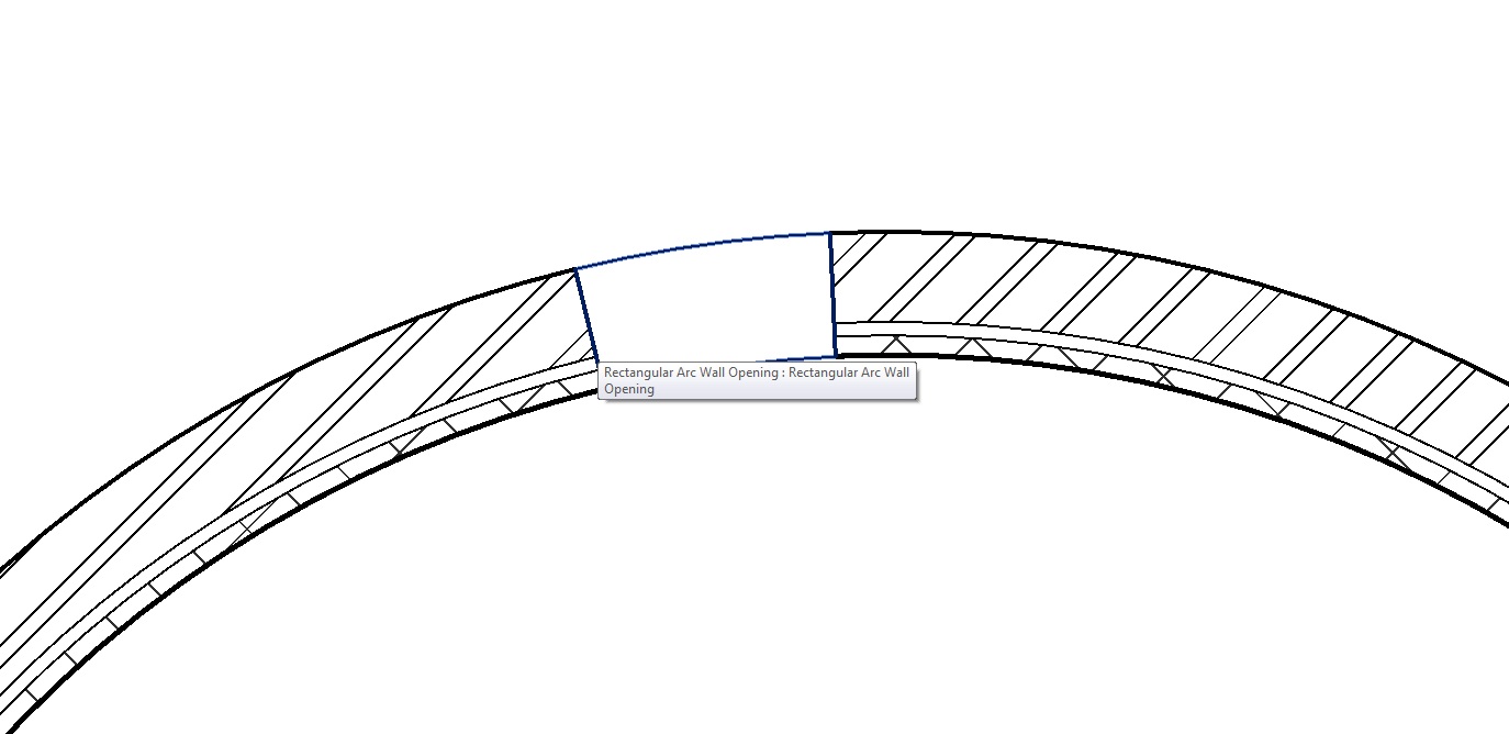 This is what I meant, wall opening creating a perpendicular cut to the curve. This was a standard wall opening, i suppose i could create a sweep with a bit of good maths that followed the radius of the curve not sure how i'd go abot it but i'm sure i'll figure it out