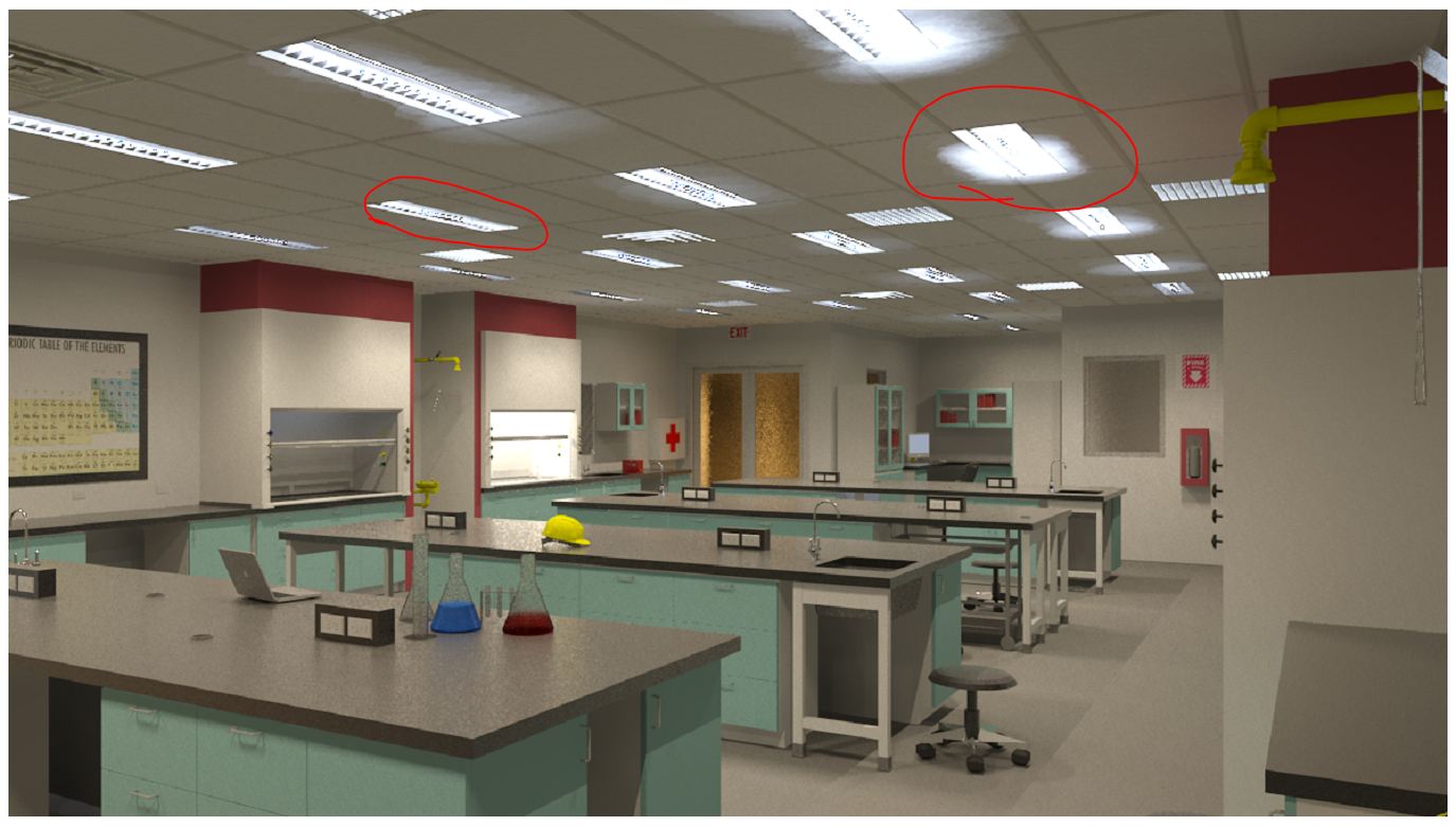 As a 'tip and trick' I always create a little 10'x10' room with a scope box for testing my light fixtures prior to going full-scale. This fixture works fine in the test room now and before all the modifications from this thread; Capture5 attached. Note only minor ghosting of the fixture on the ceiling.