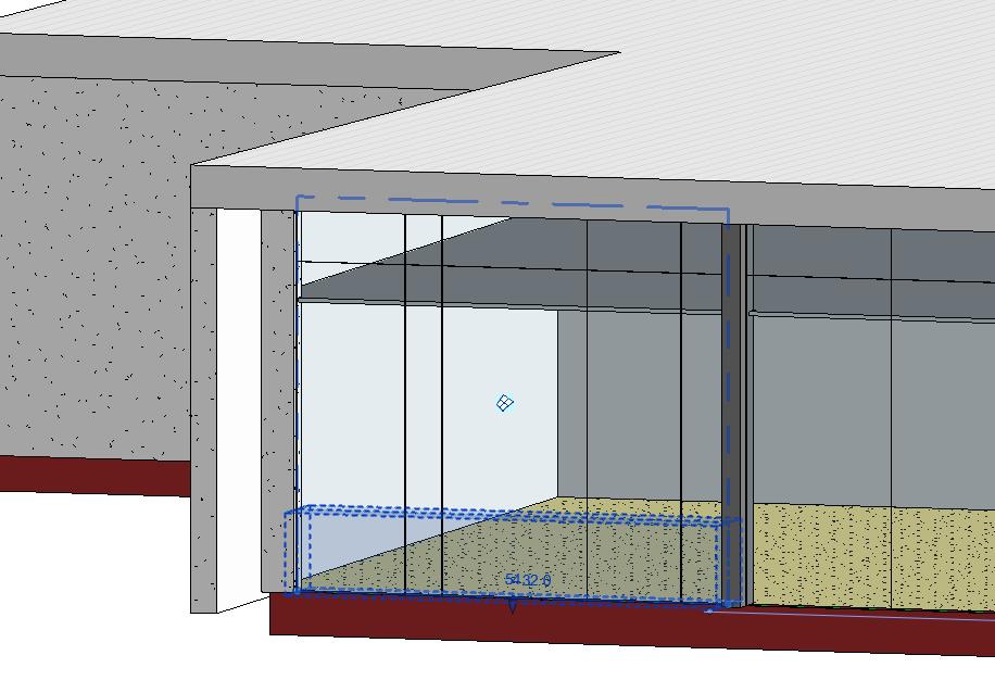 I'm trying to recreate this curtain wall in Revit (I've included a screen grab of a SketchUp model). The first query is relating to Attach Top/Base. My flat roof has a slight fall, so I haven't made a level that can act as a Top Constraint for the curtain wall - I hoped I might be able to Attach Top/Base. But when I do, there seems to be an outline of the original size left over. See the example I have included: I originally made the wall 1m high, then used Attach Top/Base - but as you can see, a 1m high outline remains. Perhaps this isn't a problem; it just seemed strange.