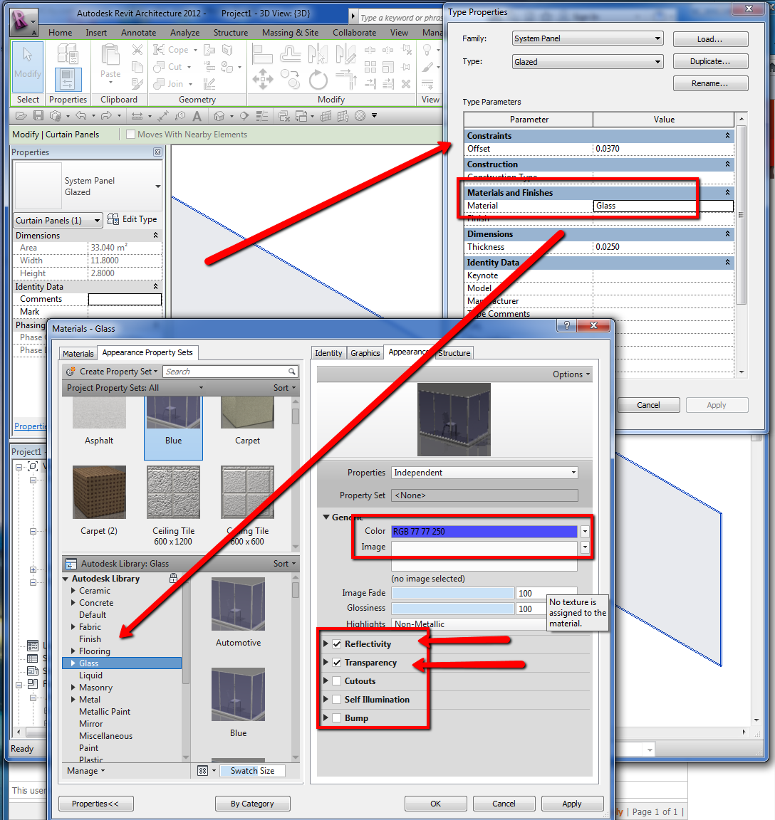 When I use the render-function. It does not show my windows. they are 'invisible'. I am using Curtain Wall as window in the bottom.
