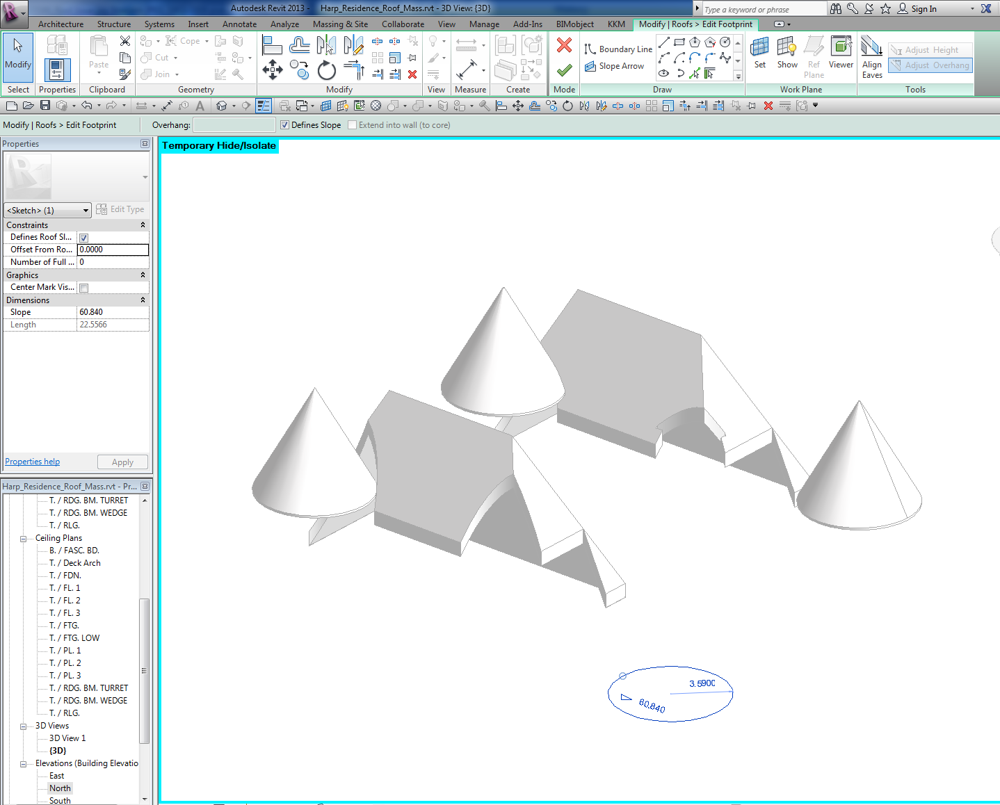 Drawing a hip rafter in massing |