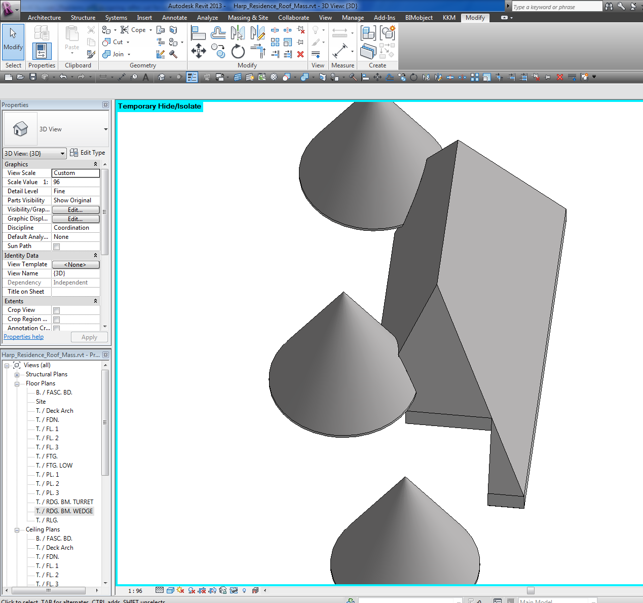 I'm also going to try making the massing with fewer voids and then trim using the roof trim tool to trim, then to to extend where needed...