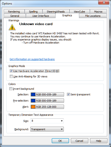 Post a screen capture of the Graphics tab of your Options dialog box.