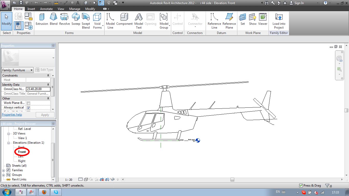 I open new family and choose metric furniture. Then set the work plane to be Front and drew it in that elevation.