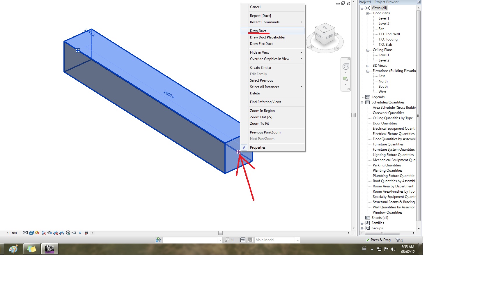 Thank you again, absulute, in fact, the tap seems to be the piece I was needing; I just changed the width and depth parameters to be type parameters, in order to be able to make several types without making new families each time; but a new pain in the ... neck appears: when trying to attach a duct to its end, revit doesnt allow me to do it. Message "no route solution" pops up. Maybe I´m not using it the right way. Maybe i dont know what a tap is. Can u help me in any way? Image to see what im trying, provided.