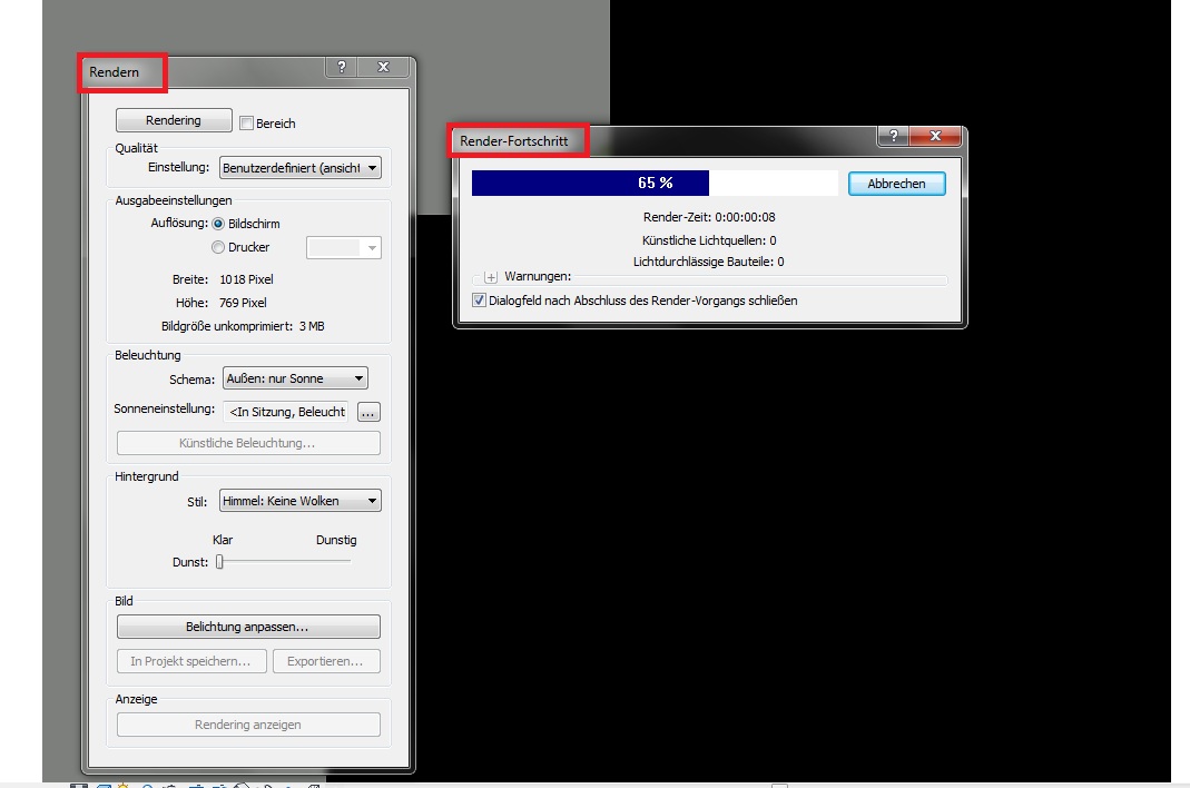 German: "Rendern" "Render-Fortschritt"
