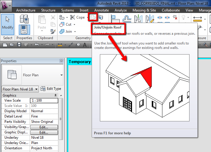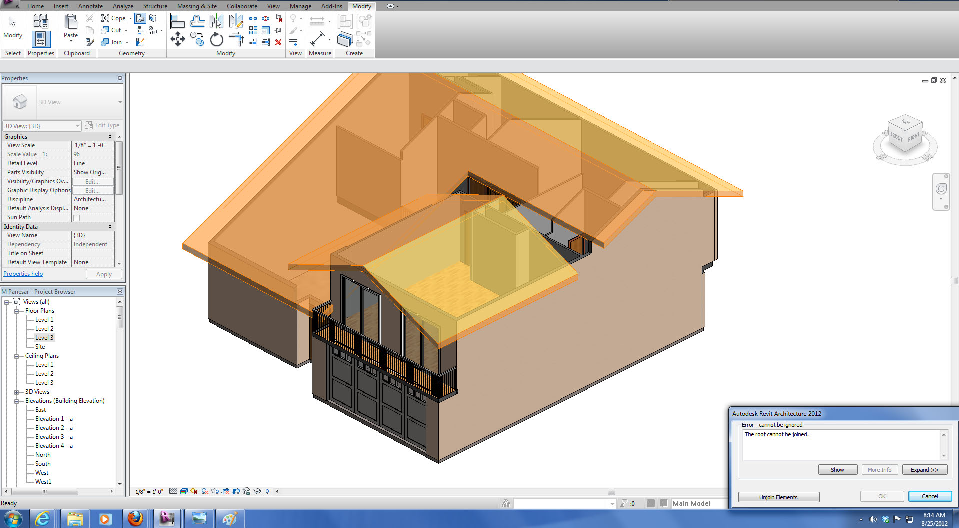 Problems:1. I can't join the roofs with the join/roof command. "Error art of the roof to be joined misses the target face."
