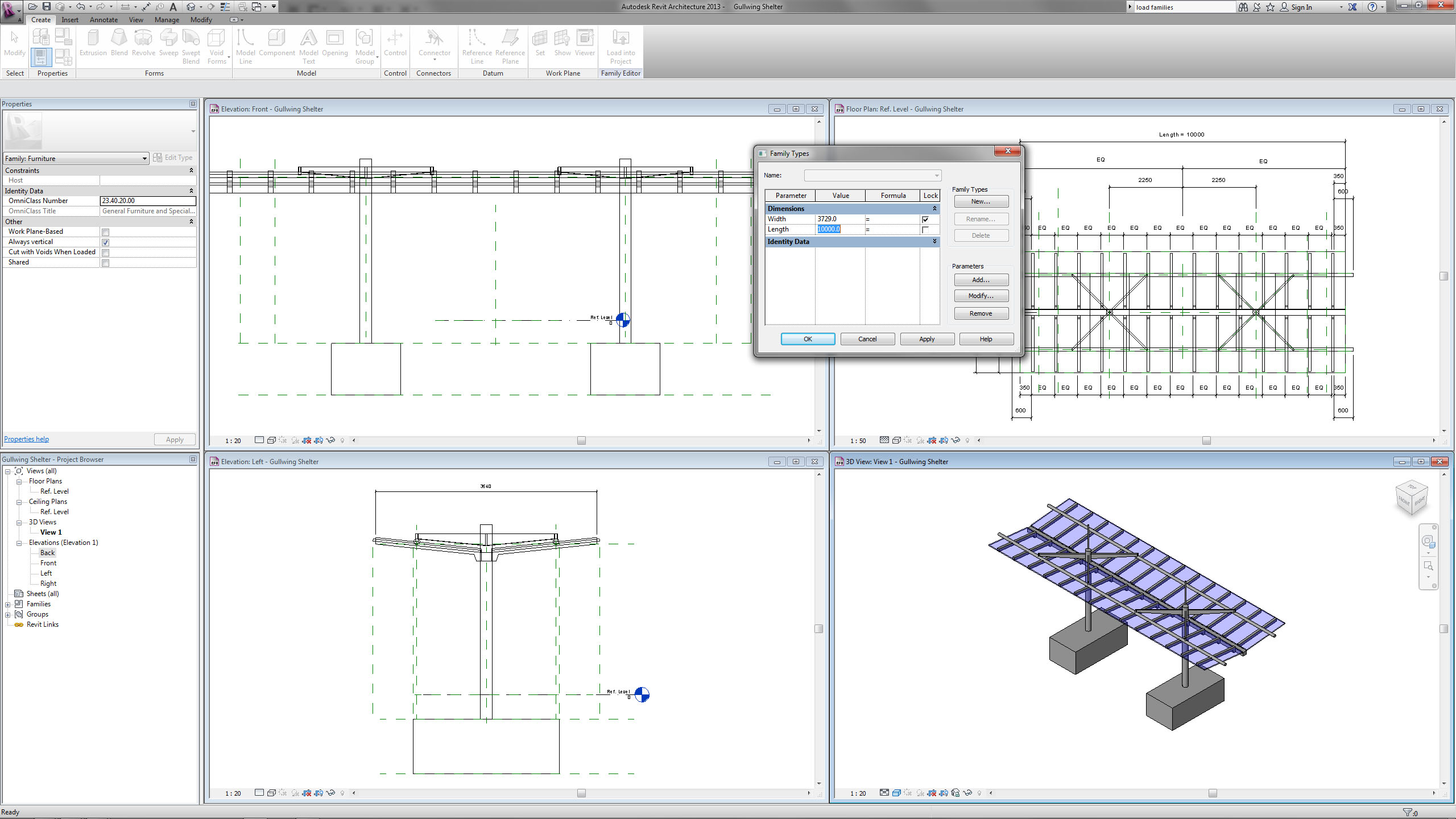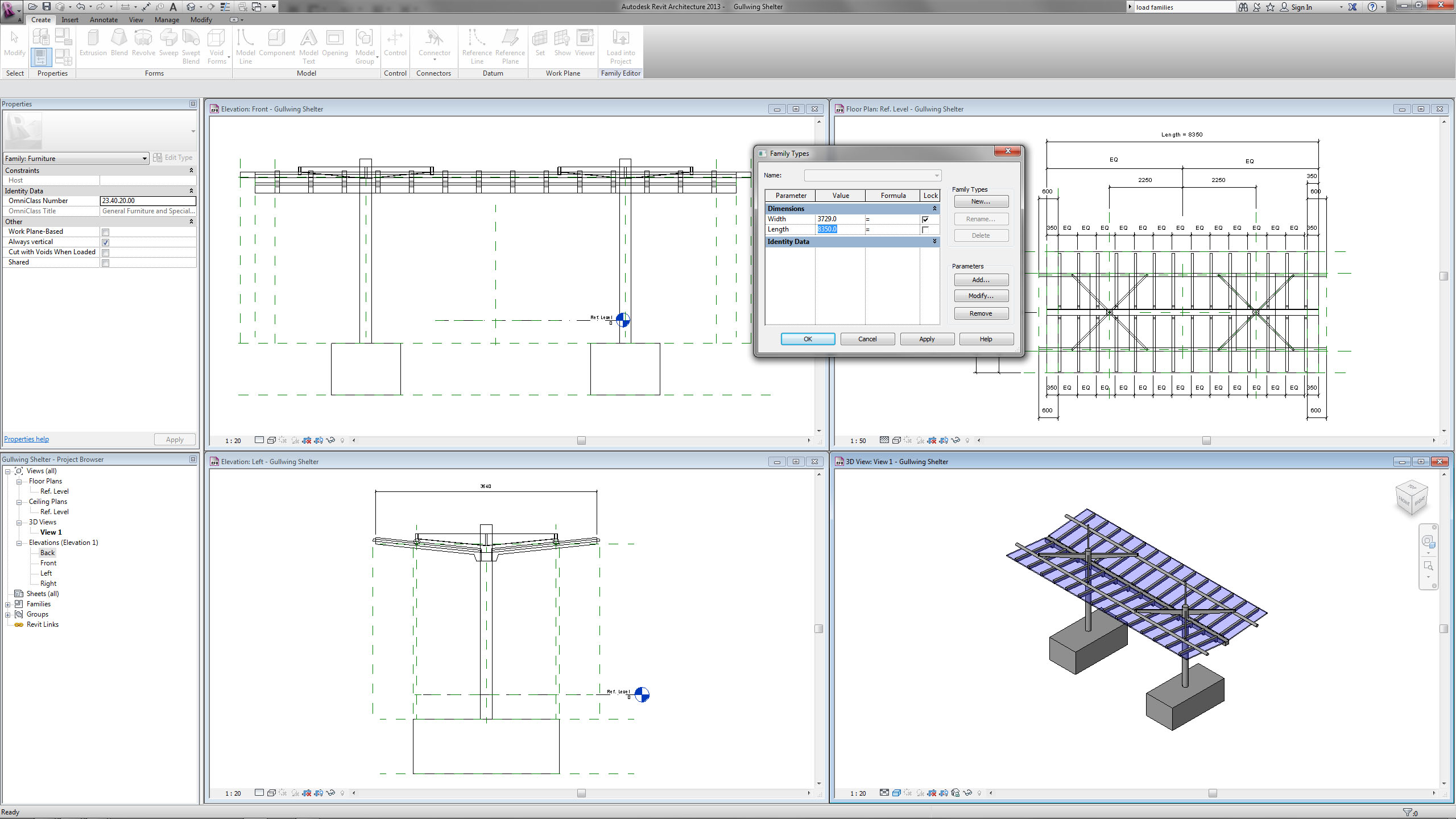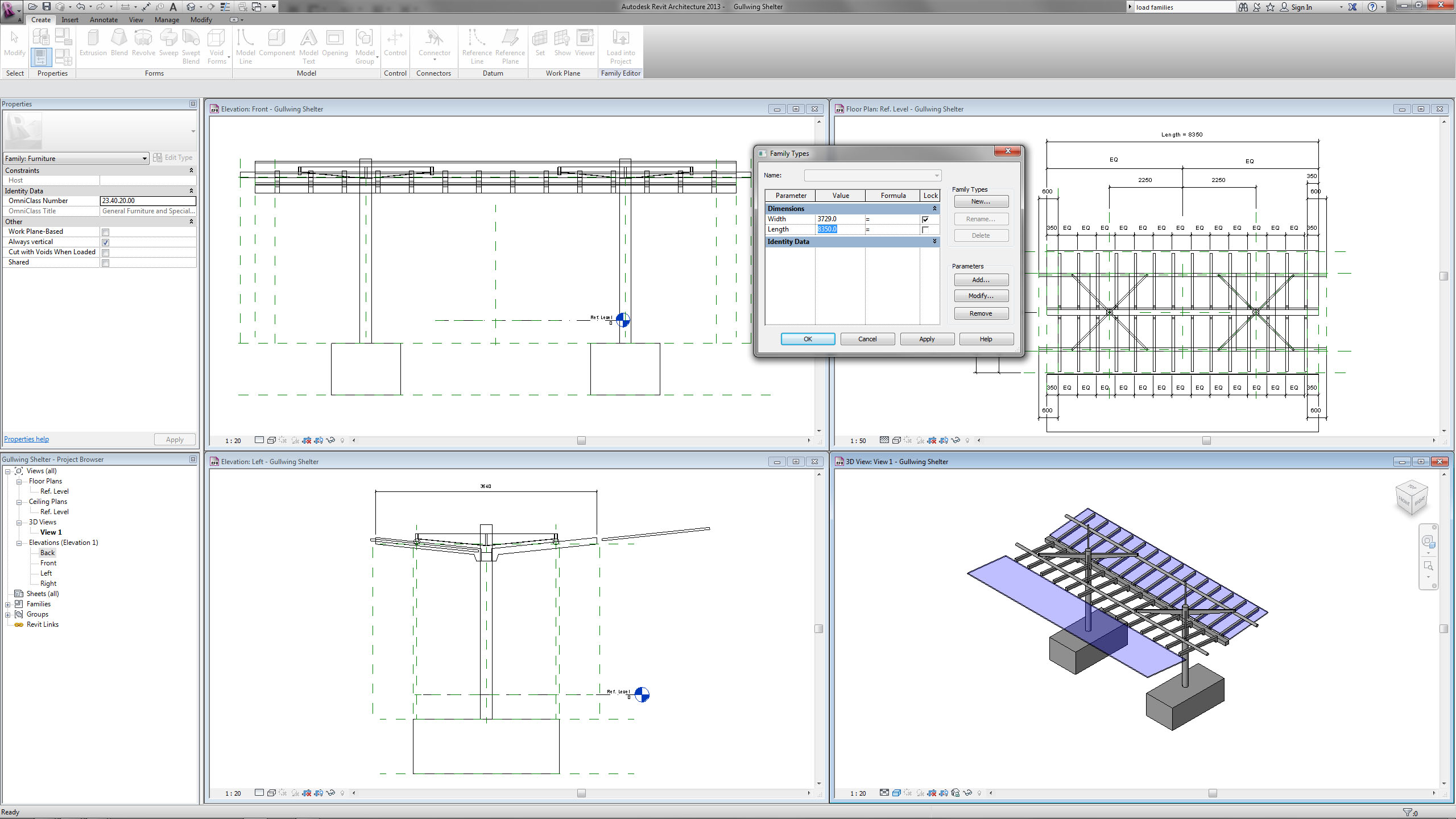 I'm very new to revit and after watching tutorial on creating a parameter family. I started my own, it is a bicycle shelter. The width needs to stay the same but the length can change.