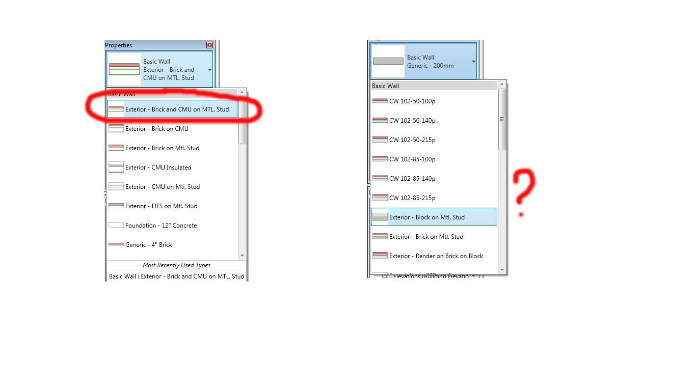 I installed revit 2011 and learned it from some tutorial books, but it seems my revit lack some wall types, i tried to load family but it no use for wall. So i downloaded some tutorial templates and projects that had the wall types and in the window view of those projects, the wall types appear in properties, but when i tried on new project, the wall type weren't there anymore.
