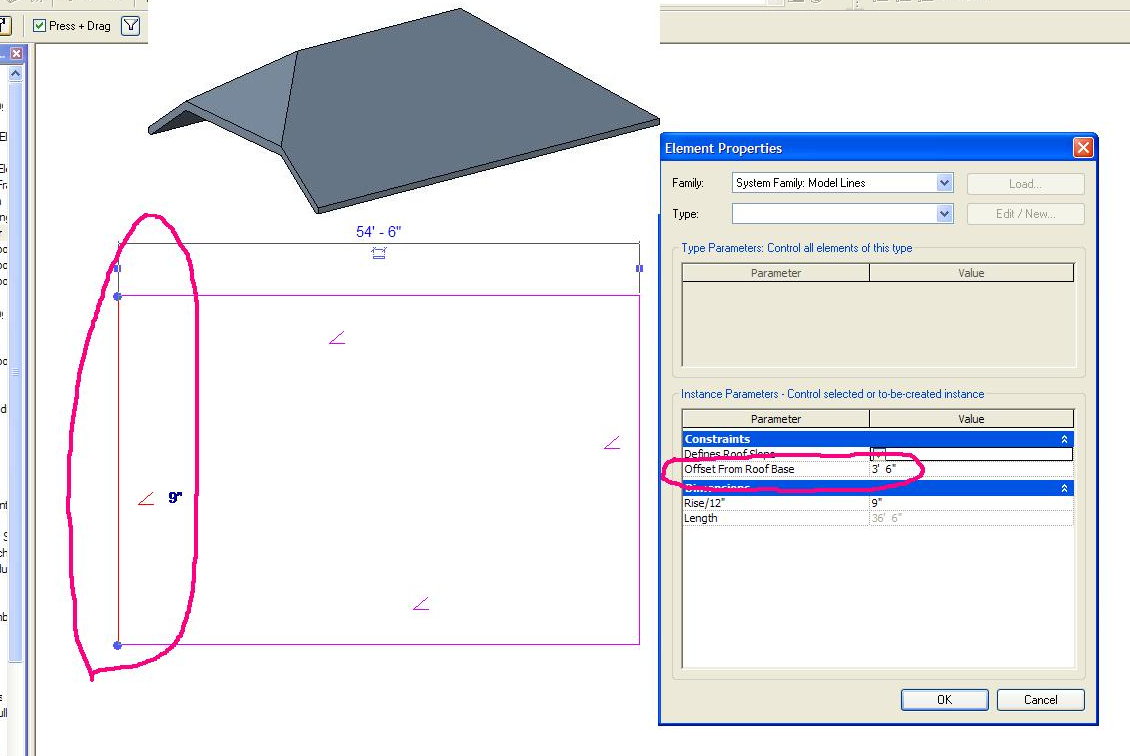 I use Reference planes in the plans and elevations to help layout the roof sketches.