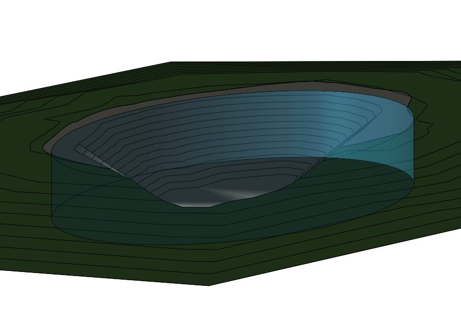 Yeah that looks great except the reason I run it through the topo surface is because it doesn't look natural in your image where the water meets the ground unless you have a perfectly graded consistent sloping ground line. And even then the water would still look a little off if it didn't actually touch the topo.
