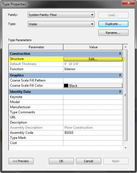 personally, i just create an in place family and adjust the depths as needed. but if you draw a floor like typhoon just make sure the thickness is deeper than the bottom of your water to the top of the water surface. it's all about how you use it in the end also, for rendering the depth isn't as important but for a shaded view (like my image) it would make a difference.