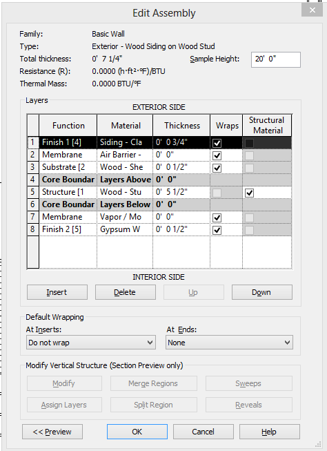 Is you wall made up of only one material in the structure? Or do you actually have different layers set up in the wall properties?