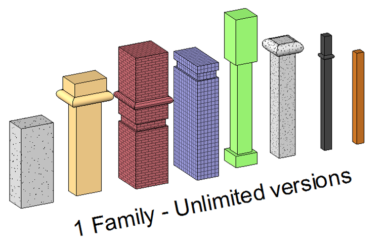 You need instance and type parameters, voids, solids. sweeps, extrusions etc. . . it's not as easy as ABC