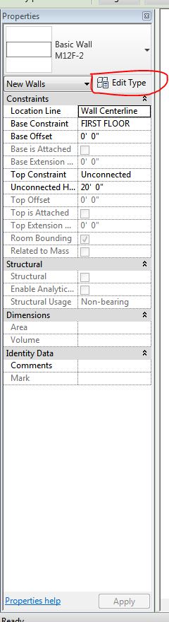 I think I'm missing something. What (where) do you mean 'WALL' properties? Where do I find the settings for WALL properties so that I may change them? What tab and panel will I find them?