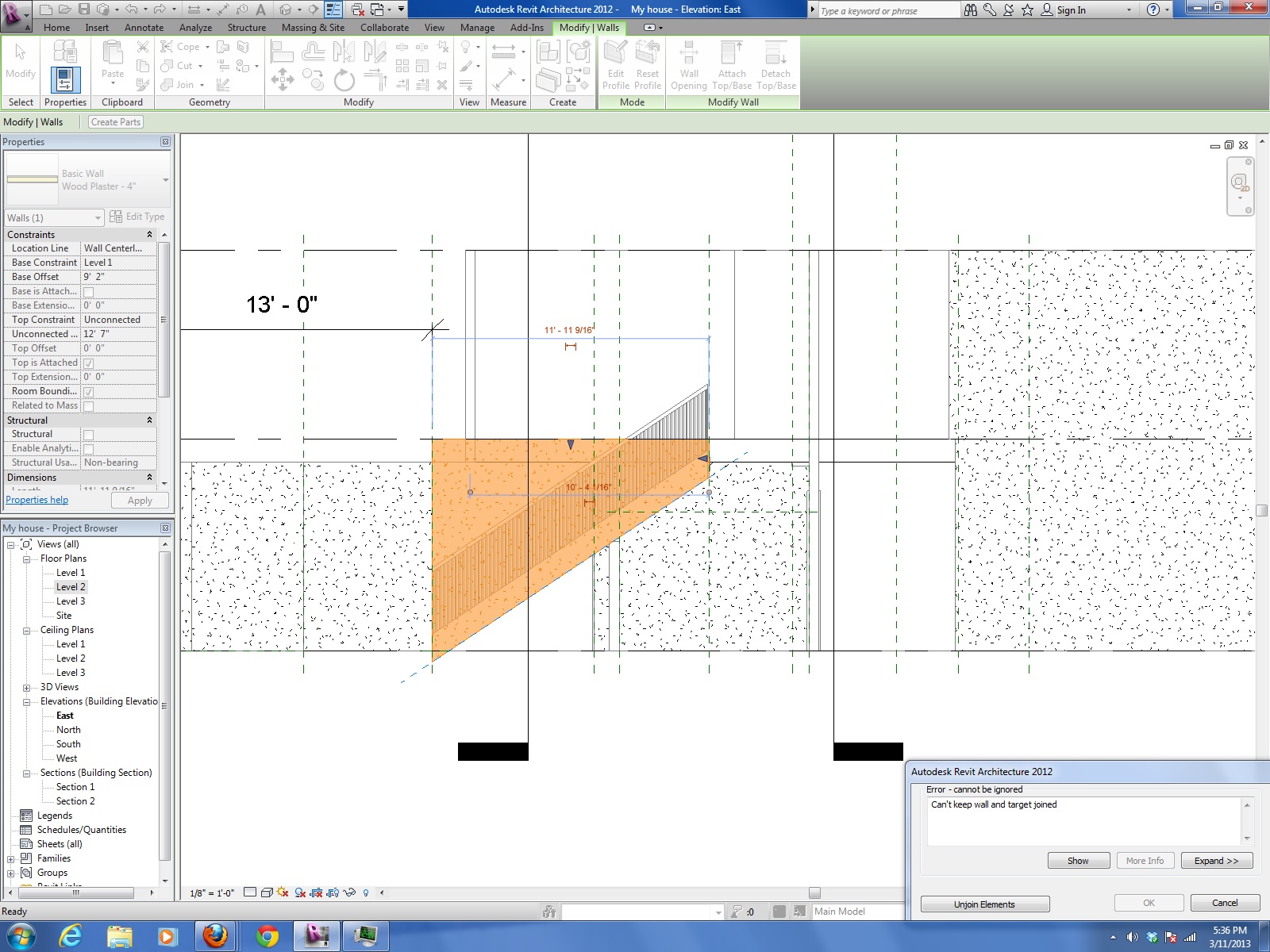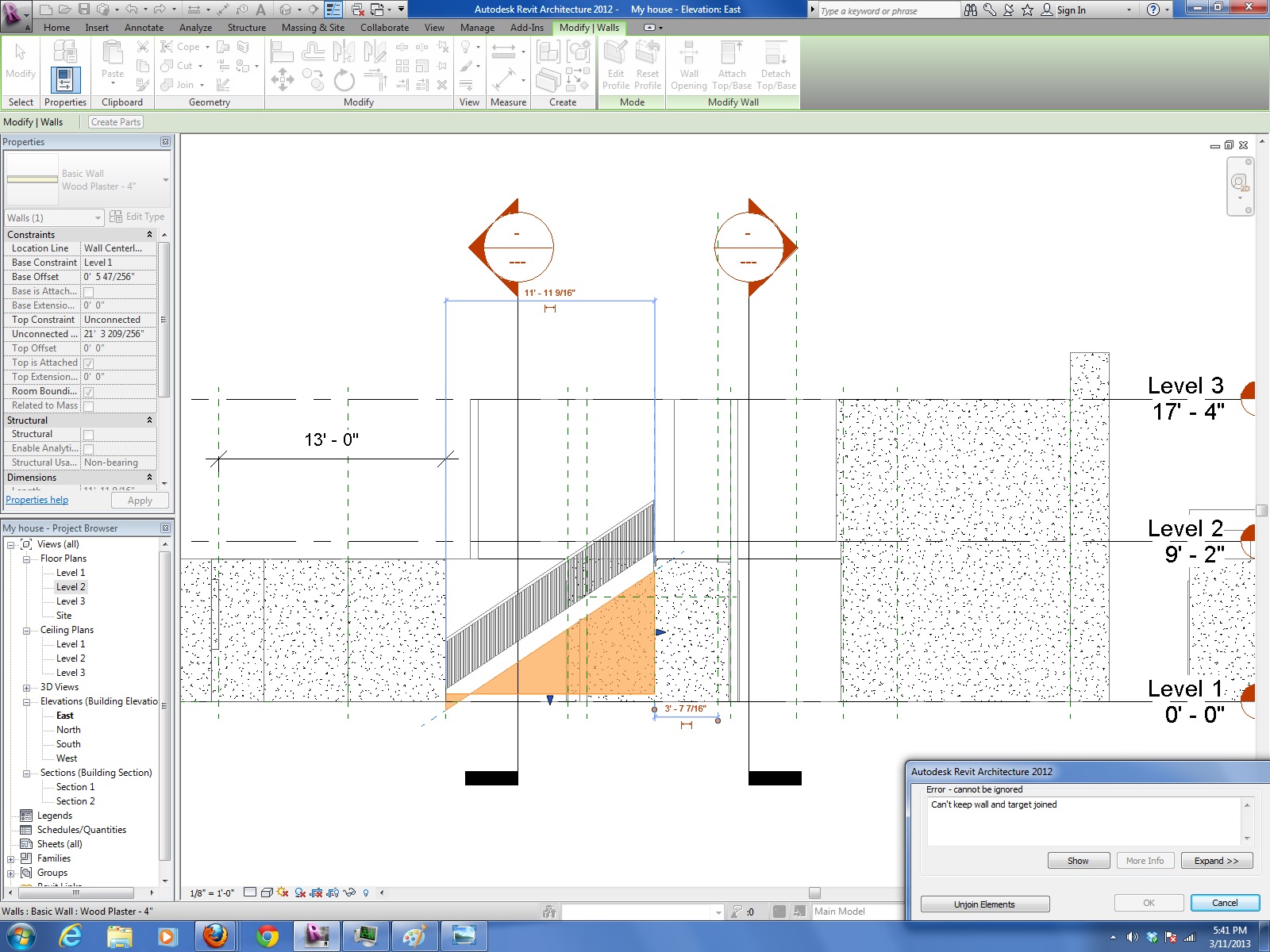 I have the following problem in RAC 2012...please see PDF's attached. The wall needs to follow the outline of the stair...part of the underside of the stair is on the exterior...how can I