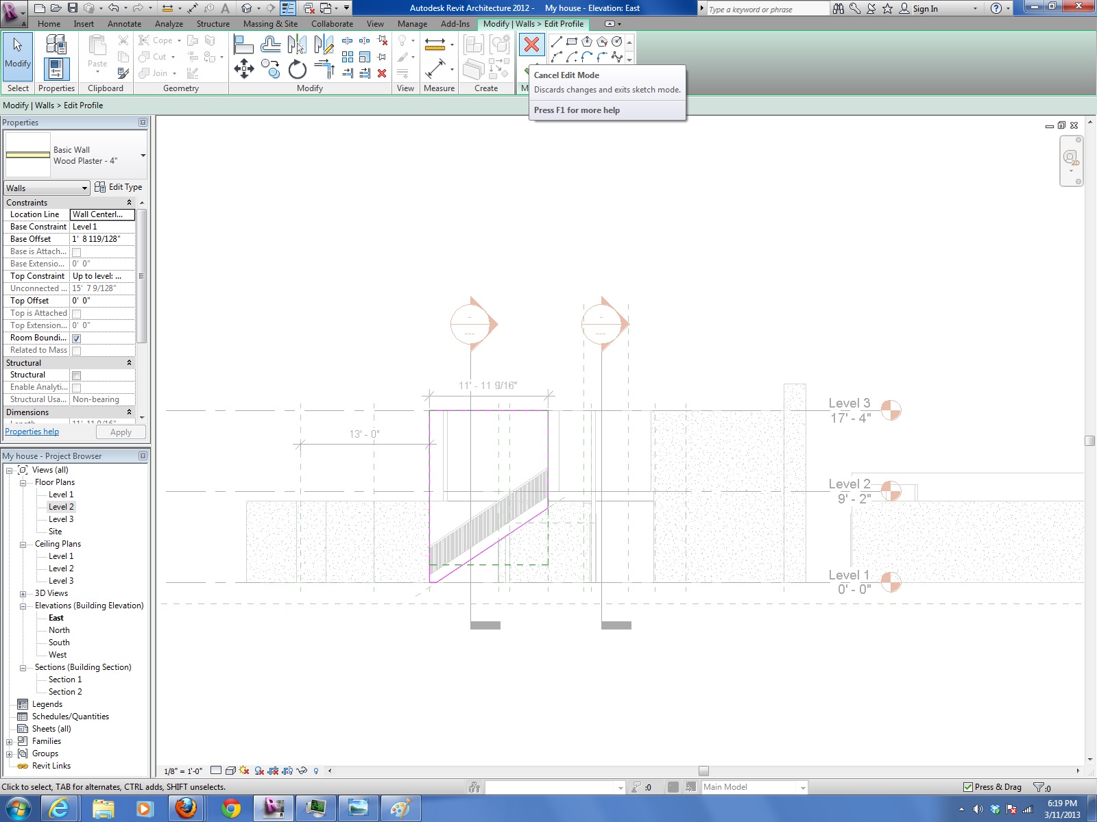 3. In Elevation pick wall - then click "Edit Profile" under Mode in the Modifying command