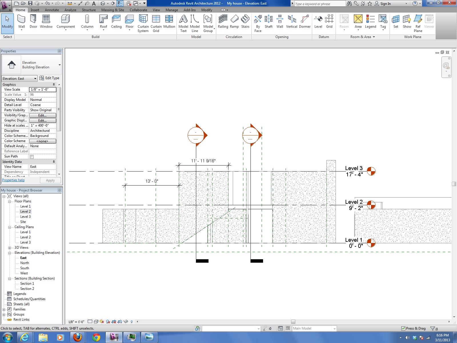 1. Draw reference plane in Elevation