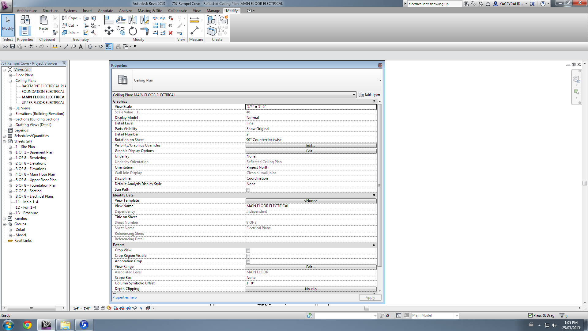 I am using Revit 2013, and am having issues with getting my electrical to print. It shows up on the computer screen, but is not visible in the print preview, or when I print. I have gotten it to work in other files, and it prints fine on my foundation and second floor of this particular file. It only does not print for my main floor. What the heck is going on?! Any help would be much appreciated!