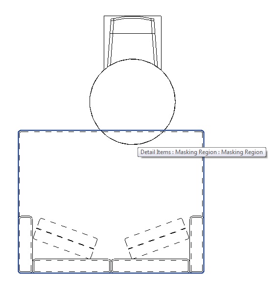 It consists of a throw pillow loaded into a sofa, which is then loaded into a nested family.The sofa's seat is at a level of 375mm. Another table loaded into this nest family stands at a level of 525mm, with a small area overlapping the sofa. I did a masking region over the boundaries of both the sofa and table. Thus, there will be an overlapping of masking regions. However, I couldn't get the overlapped part to be covered.The ref plane set for both elements have been set by their respective heights.