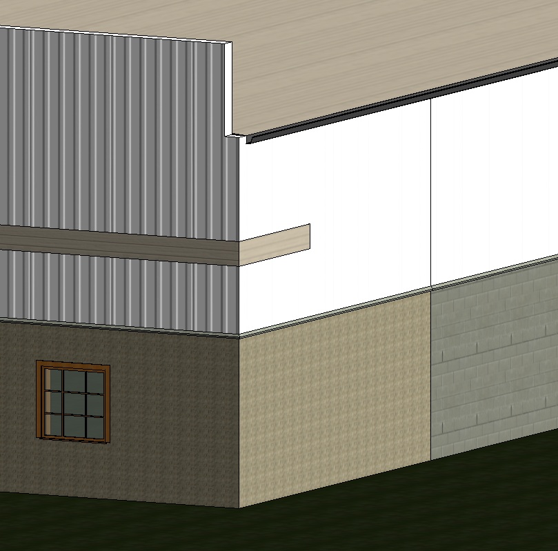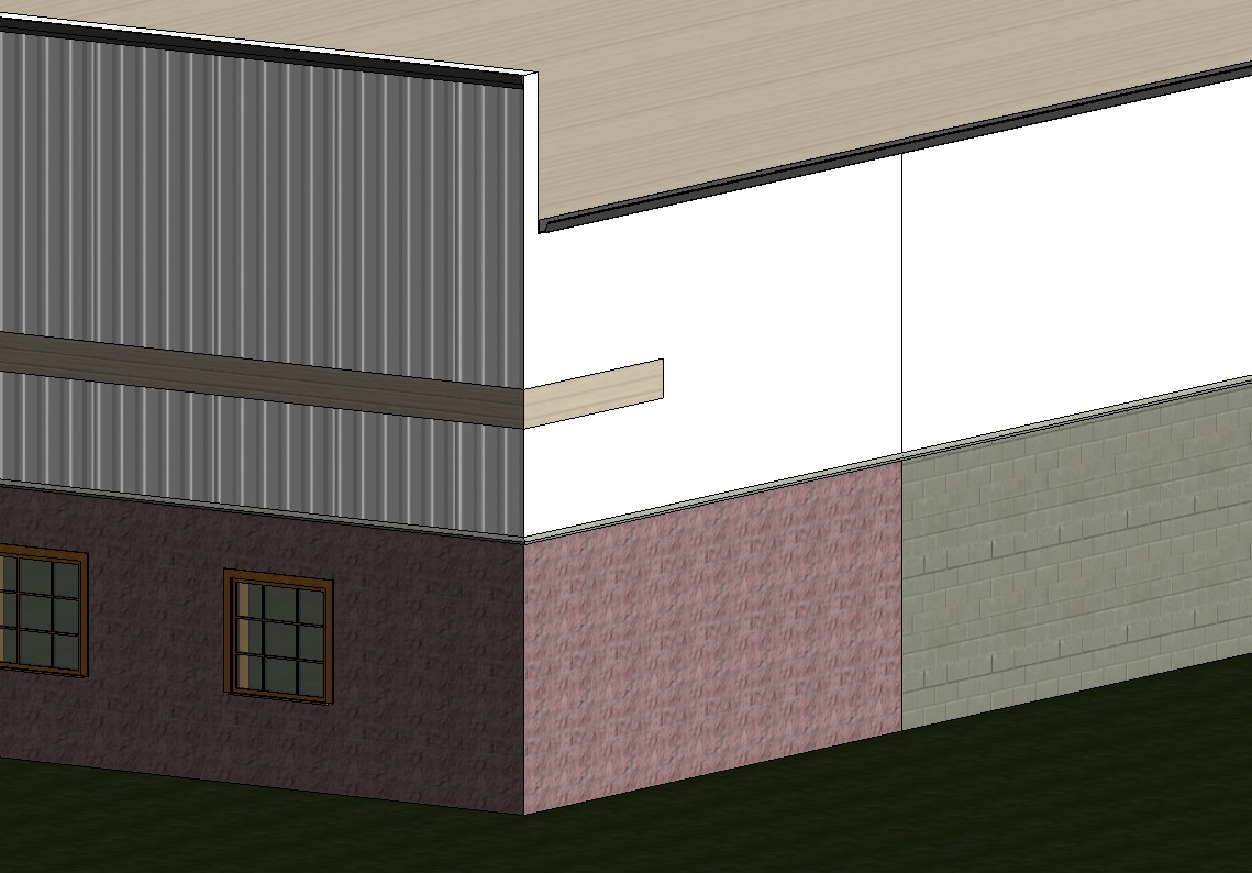 The 20ft return i have around the corner wont blend the materials. I'm trying to elimnate the line between the metal cladding above the CMU blocks.