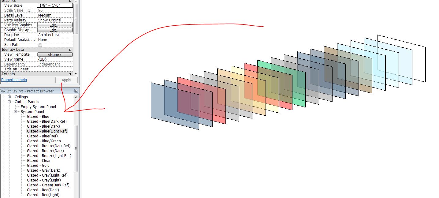 1. make curtain wall types using the panels you made